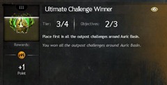 For this achievement you have to place first at the challenge in each of the four outposts. This achievement may take a few maps to complete depending how good the other players are.
