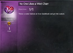 Pick up one of the Water Balloons and throw it at Evon Gnashblade standing by Sky Docks Waypoint for this secret achievement.