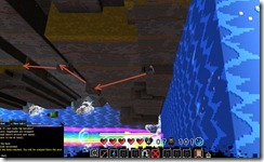 Hidden room 9: Die or find your way back to the checkpoint and before you cross the river with the moving logs, jump to the rock here and then throw a bomb behind the waterfall. At the very bottom of the waterfall will be another hidden room with a red bauble.