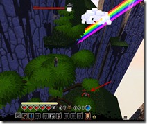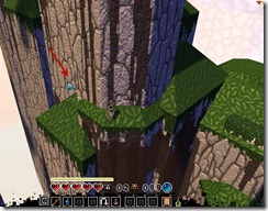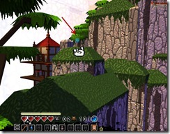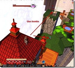 You will now need to make a very hard jump to get to the cloud near Shortcut Eagle. If you can, try a dodge jump as it covers longer distance than a standard jump (put your thumb on spacebar and V and then press at same time). Push the block with your glove of wisdom to jump up there. Be very careful to not get sucked in by the shortcut eagle (you need to jump on the mountain nearby right after grabbing the bauble). Your first hidden room is also here which you can access by throwing a bomb on the top of the mountain covered with canopy. Buy your key here!