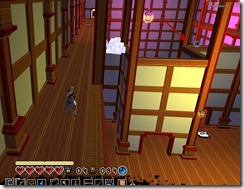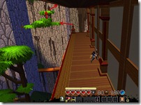 Blue Bauble on top of the second pagoda you can get by using the flower. There is also a chest behind the wooden boards you can break which contains the red bauble. Don’t worry about that one for now and we will come back later when we have a key from a nearby shop.  Also six assassins in that pagoda (2 red, 4 white).