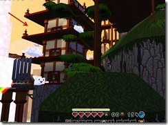 Blue bauble on top of the first pagoda. Three red assassins around the pagoda as well.