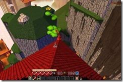 From the upper floor, go to back of the pagoda, you will see clouds you can climb to get to the roof. From the roof, you will need to make a giant leap of faith onto this tree sticking out of a giant rock to land on top of the rock.