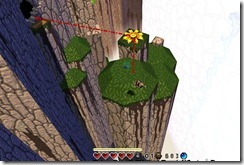 From there, follow the ledge all the way down and climb up the back wall. You will then see a mushroom pad which will take you up to the two spinning flowers that will lead you to the shop.