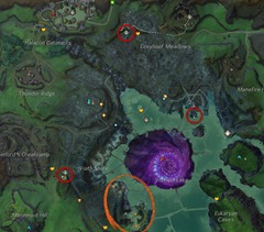 • You need to destroy 25 Toxic Offshoots. These Toxic Offshoots are marked on your map as orange flower icons. You can find them in Kessex Hills, Caledon Forest, Metrica Province, Brisban Wildlands, Queensdale, Gendarran Fields, and Eternal Battlegrounds but usually Kessex Hils is more popular since the Toxic Offshoots respawn faster there. Near each Toxic Offshoot is an event to destroy it and which event is there is important for the next set of 3 achievements.