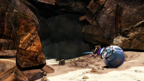 The engage skill for the roller beetle has an interesting story behind it. We messed around with ideas during our initial prototyping—and, of course, we had to do something funny with it—so we set up some choya as bowling pins and rolled into them like a bowling ball. That spawned the roller beetle’s engage skill. Roll Out rolls you right over your enemies, knocking them over on impact.